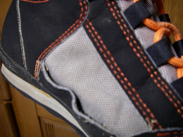 渓流シューズはこれが3代目となる秀山荘の忍者ですが、サイドの部分がほつれてるんです。