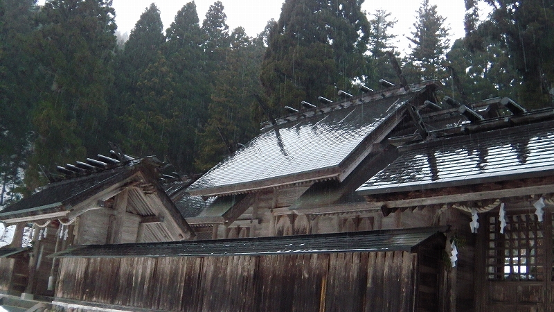 本殿は3つ。真ん中に大御前社、向って右に別山社、左が越南智社。