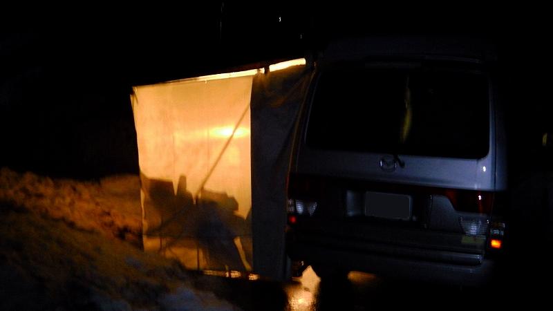 某道の駅の駐車場で就寝準備し3時頃まで小宴会。