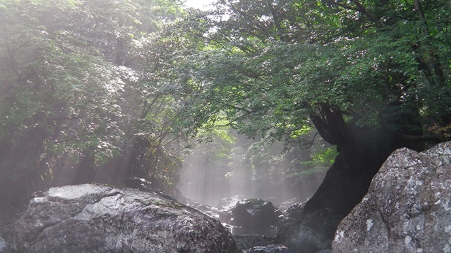 いつの間にか雨も上がり、谷に陽が射して幻想的な雰囲気