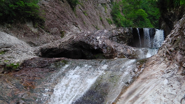 この辺りが中七ツ釜と呼ばれ、滝と釜の連続。
