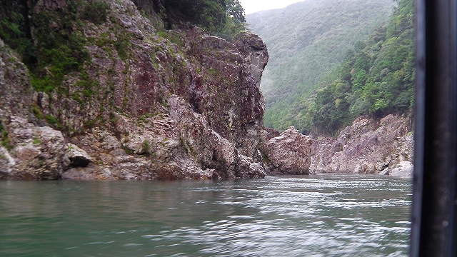 強い雨が降るなか駐車場内を走って11時30分発の瀞峡めぐりウオータージェット船に滑り込みセーフで乗り込む。