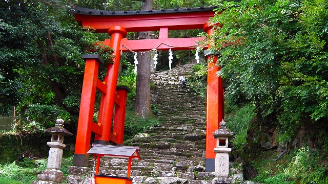 鳥居をくぐり、歴史を感じさせる古い急峻な石段を登ると・・