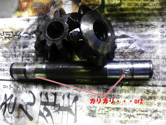 ドライブシャフトを片側のサイドピニオンギアに突っ込んで回してみるが、全く回る気配が無い・・(大汗