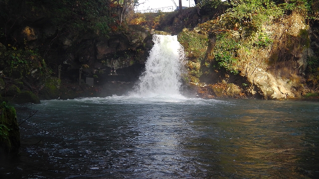 本日のハイライトは大きな釜に落ちる美しい滝。