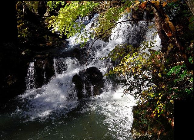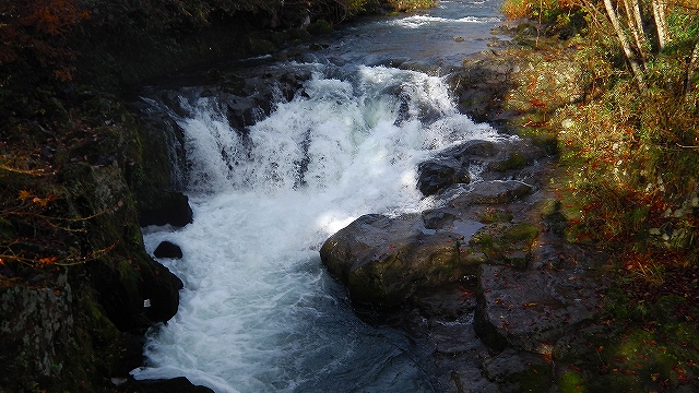 遊歩道に掛かる思案橋そばの滝見台から覗くと・・