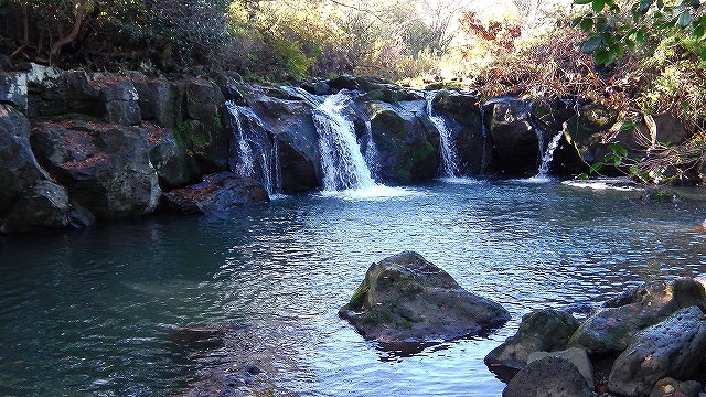 稲葉川(いなんばがわ)に掛かる十戸滝の上にある駐車場にvivioを止めて、先ずは滝の釜まで遊歩道で下りる。