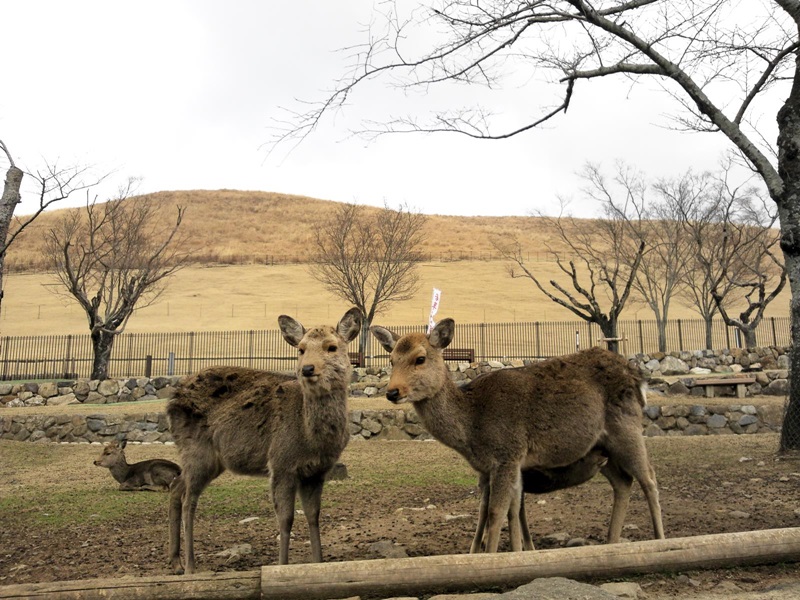 若草山の麓を、鹿にせんべいをねだられながら・・