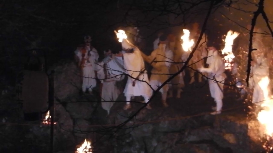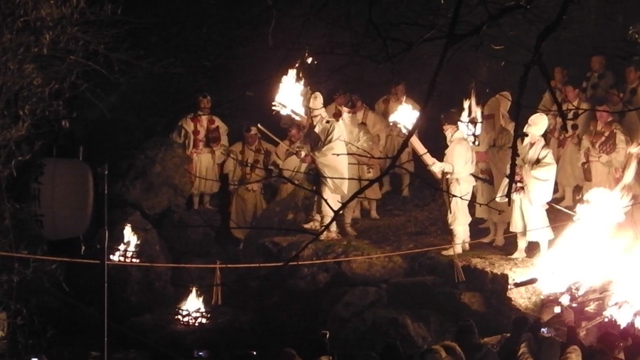 ほら貝の音と共に山伏の行者を先頭に大松明がやってきた。