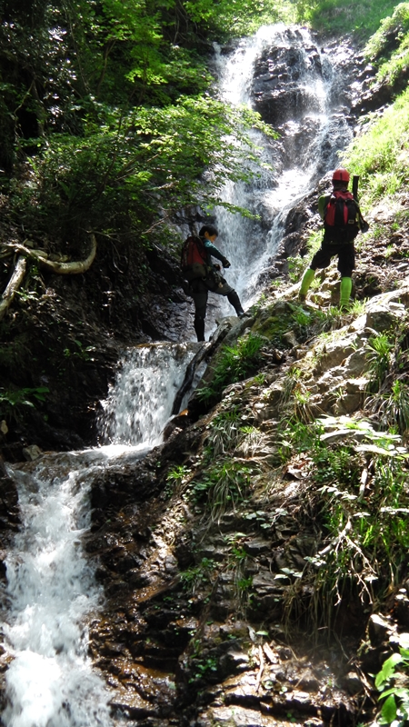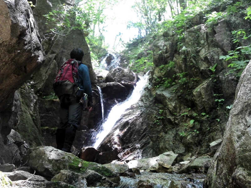 特にロープを出すほどでもなかったが、ロープワークの練習と確認ということでロープを出し、しばらくこの滝で時間を掛けてお勉強。