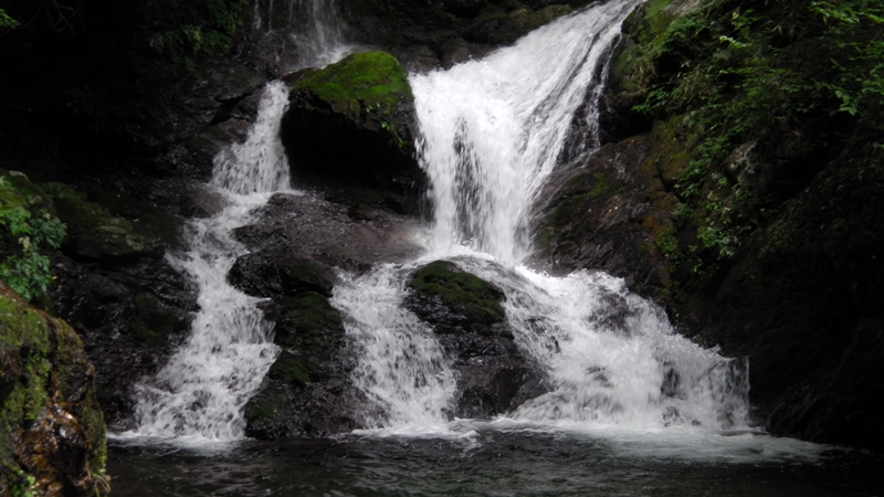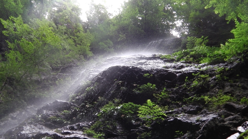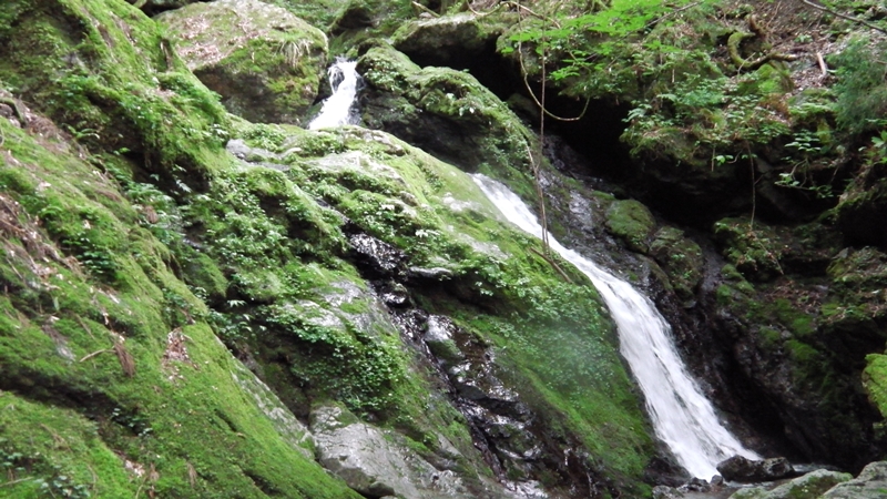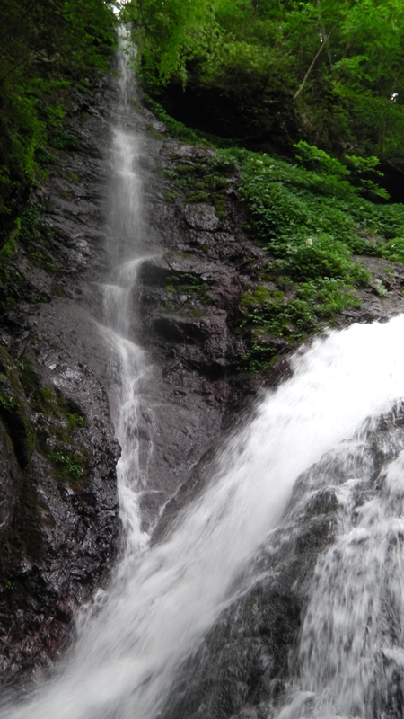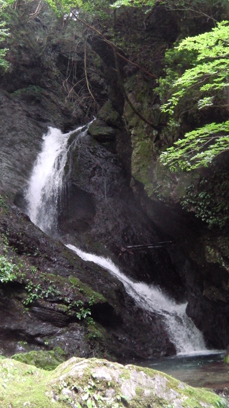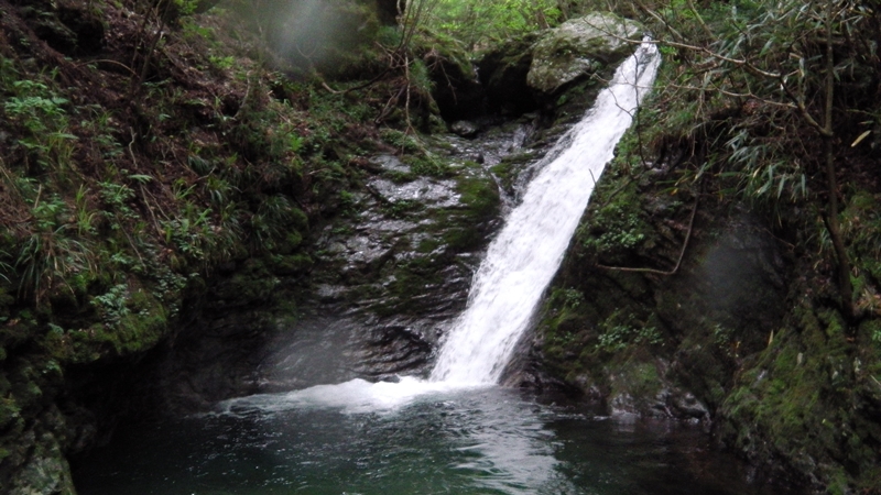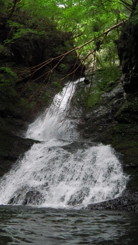 9時29分、大岩をくぐってすぐ谷が右に曲がるとそこには牛呼滝3段35m!