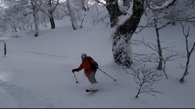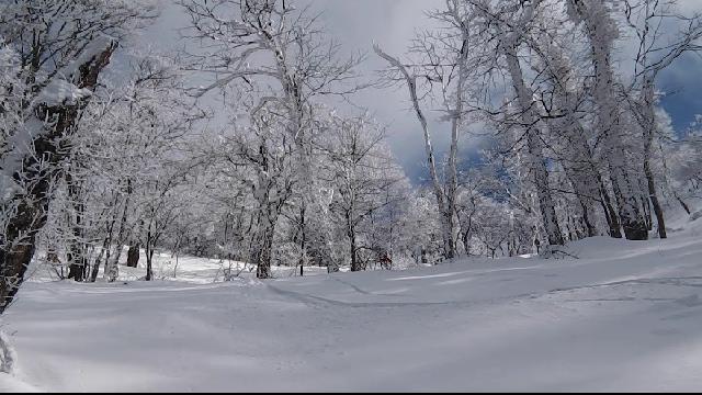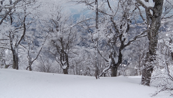 ブナ林の快適バーンを思い思いに滑ります。極楽極楽♪