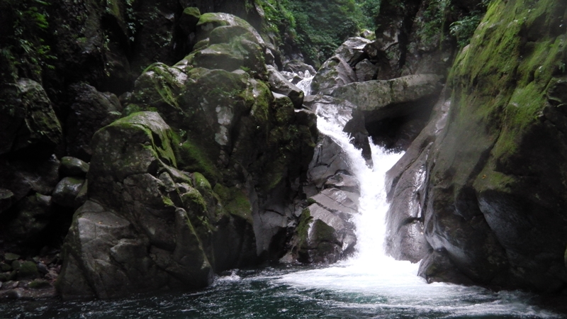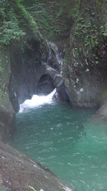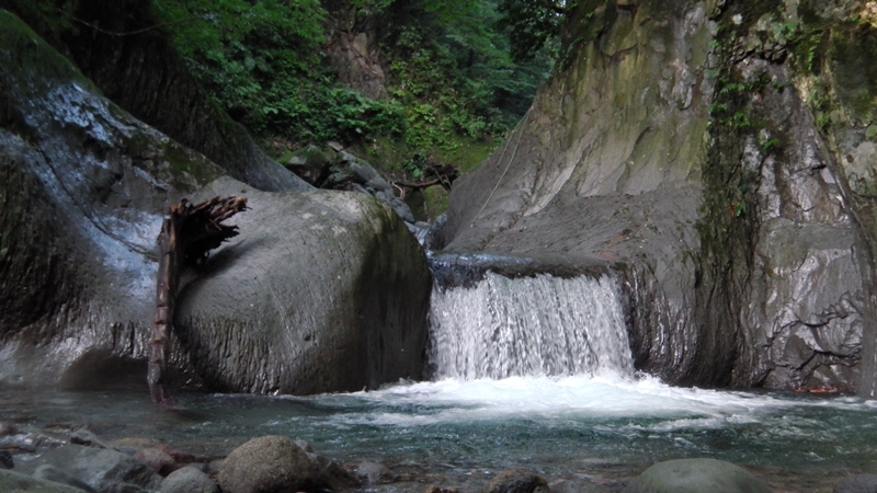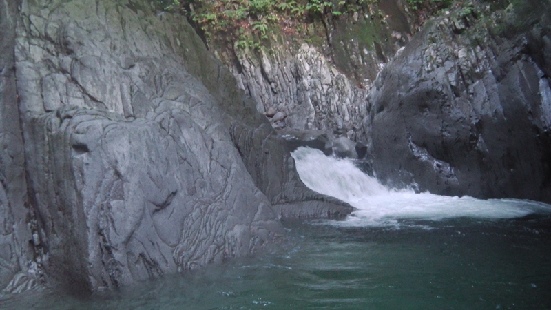 その向こうには両岸が狭まり細長い淵が続き、先には1m程の小滝が結構な勢いで落ちている。