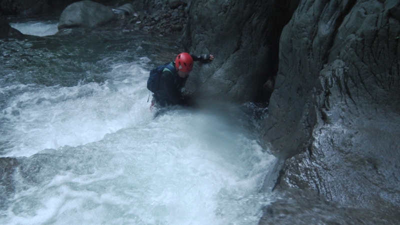 その後は釜を泳ぎ、登り、へつり、飛び込みまた泳ぐの繰り返しでどんどん体が冷えていく。