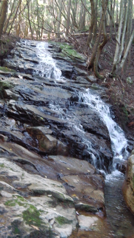 帰りは素直に登山道を使い、登山道と谷の交差点でまたツルツル滑って転倒寸前・・(泣