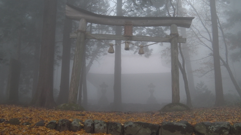 雨に煙る船上山避難小屋