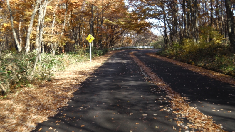 河床登山口の駐車場を脇目に車道のワインディングを爽快にダウンヒル。サングラスを持ってこなかったことを悔やみながらも・・・