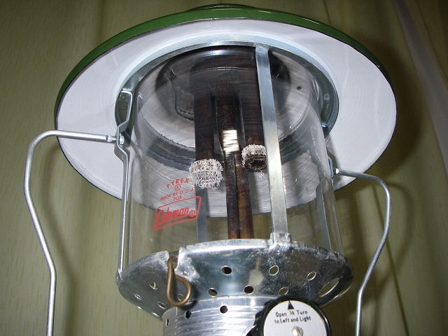 外観はベンチレーターやタンクの塗装に欠けや大きな傷は無く、フレームも少し錆が出てるものの綺麗なものです。グローブはPYREXで傷も曇りもありません。