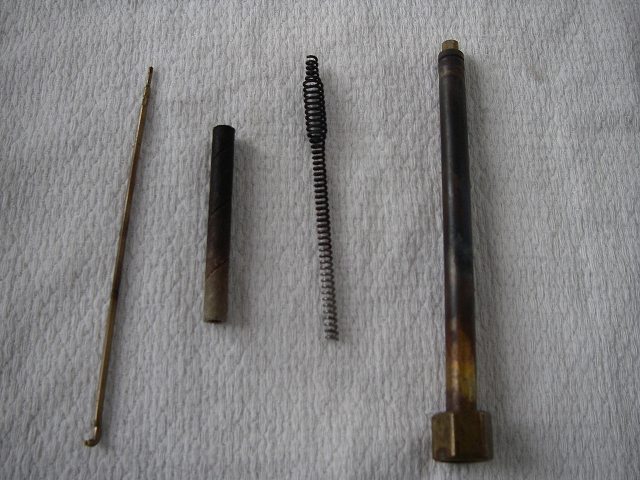 パイプ内部とスプリング状の部品をキャブクリーナーで洗浄し、磨いて再組付けしました。