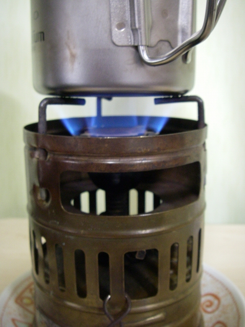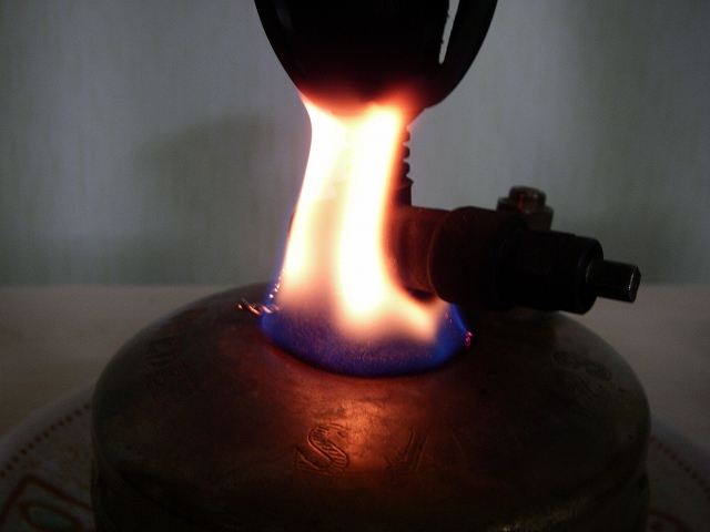 バルブを開き着火します。すぐに安定した青い炎で燃焼しました。
