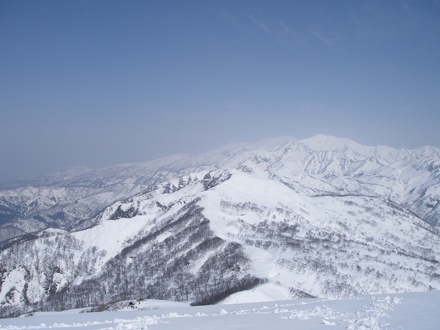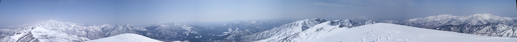 画像は北方面。薙刀山から三ノ峰、別山、白山の展望。