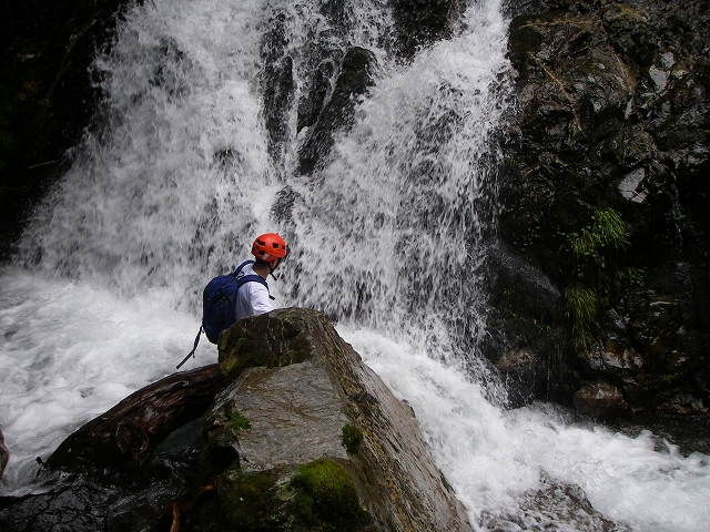 さて、小滝をこなし、続く8mは左を巻く。