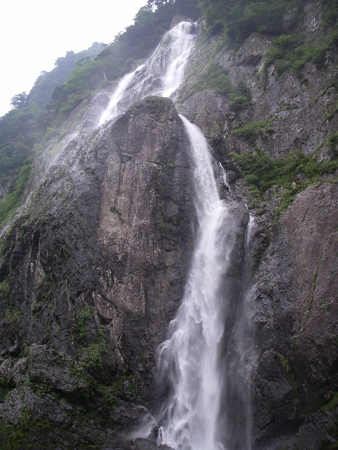 8時8分にハイキングコースをシオカラ橋に向かって歩き出す。シオカラ橋からは廃道となった滝見尾根の踏み跡をたどり、時々間違えながら(笑)滝見岩に。ここから見える西ノ滝は高さ150m!中ノ滝は245mを誇る。踏み跡はグングン下り、出発から1時間半で無事に西ノ滝の下に到着。