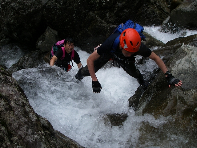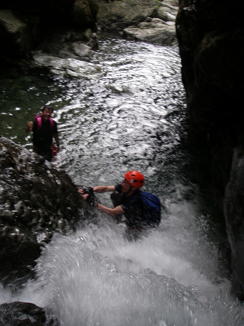 続くFJ井君は水流の中にあるちょっとしたスタンスが見つけられなかったようで、akatomoさんが大根を引き抜くように?元気の無い鯉を水の中から引き上げるように?スリングにつかまった彼を引き上げてました。