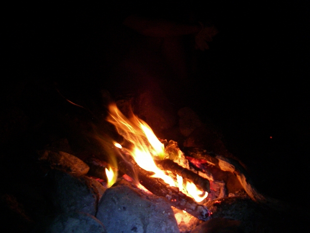 少し固めのご飯(笑)も炊き上がってメインのマーボ茄子丼をかき込み、すっかり日が落ちた頃には焚き火も盛大に。但し風がなく暑くて暑くて焚き火から離れて足を水に漬けながら、川の水で少し冷やした秋田の銘酒「大平山」を戴く。甘めでもすっきりした味わい。おいしかったですわぁ。akatomoさんありがとう。