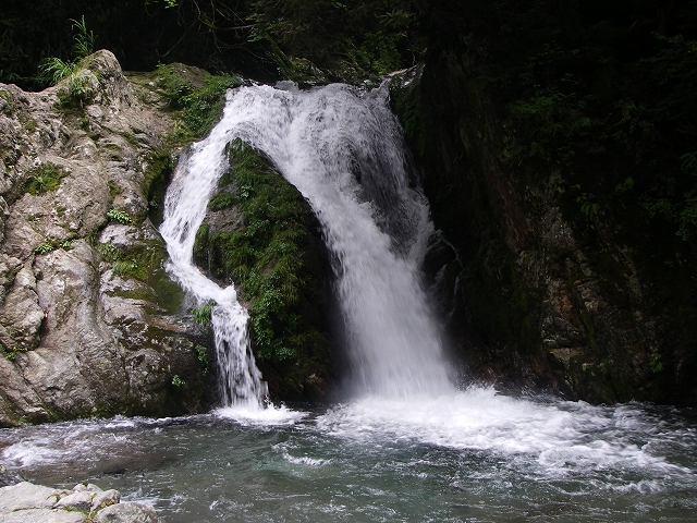 8mが巨岩が重なり大きな洞窟に落ちるように見え、なかなか見ごたえの有る滝です。