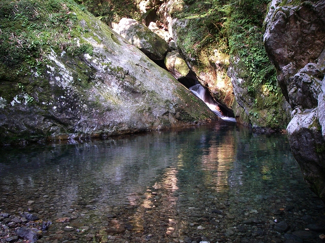 出合の6m横を登り橋の下の小滝を越えるとゴルジュ帯に!