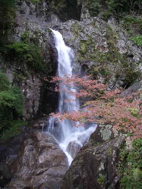 両岸がスパッと切れ落ちた奥に掛かる日本の滝100選の一つ「双門ノ滝」です。高さは70mといわれてます。そして100選の中でその姿を見るためには最も過酷な場所にあるとも・・