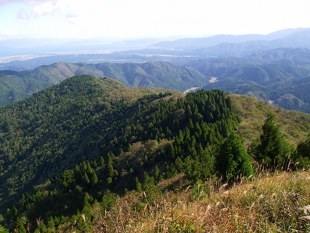眼下には正面に朽木街道が。そして奥には武奈ヶ岳を含む比良の山々が延びる。