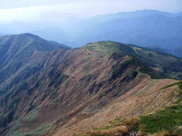 少しのアップダウンで快適なルート。右側はスパっと切れて、白水湖に続く谷にガレ落ちている。