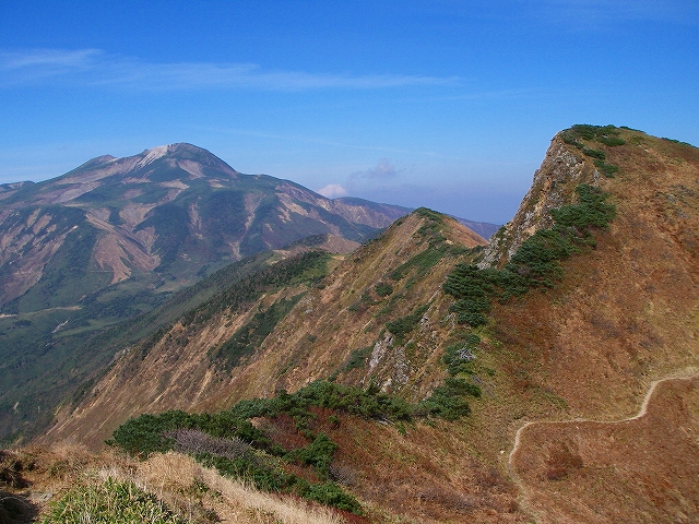 チブリ尾根に取り付いて約3時間、視界が明るくなると眼下に岩屋俣谷を、見上げると別山の絶景!