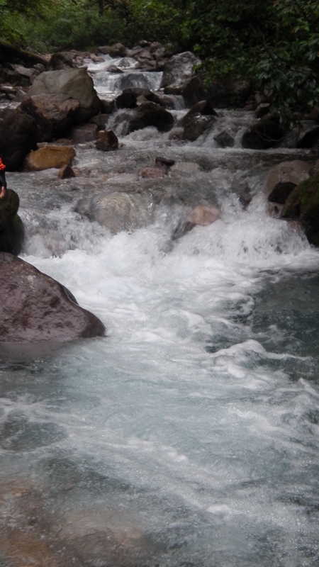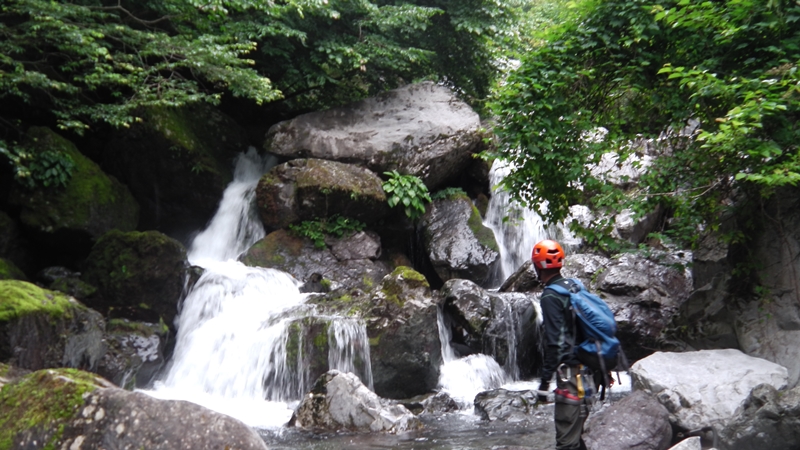 入渓直ぐは重なり合った岩の間を落ちる小滝を越える