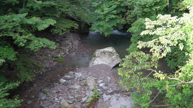 僕らも準備を済ませて、やる気満々で大白水谷に掛かる橋まで車道を進み、恐る恐る谷を覗き込む。