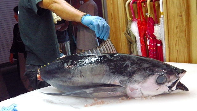 お店の計らいによるサプライズでマグロ解体ショーならぬマグロ解体試食会が始まった。