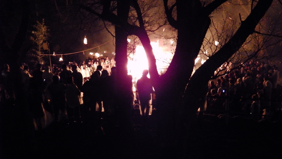 ほら貝の音と共に山伏の行者を先頭に大松明がやってきた。