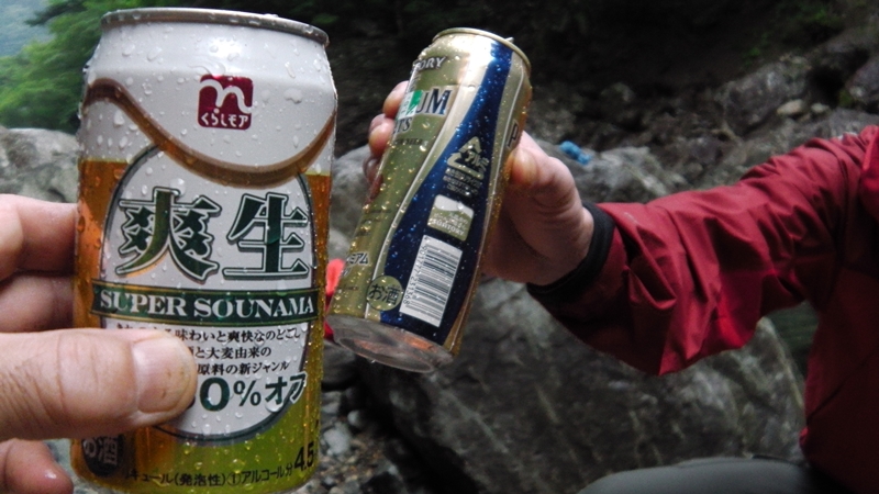 今日一日よ~歩きました。このまま雨が降らず明日は快適で安全な遡行が出来る事を祈念しまして、カンパ~イ!