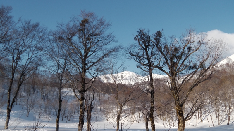 7時30分、先ずはダイレクト尾根末端に向けて出発。雪に覆われた湿地帯を抜けて尾根に上がる。この辺りは素晴らしいブナ林が広がっていたが、あまりの素晴らしさに写真を撮るのも忘れていた・・・。