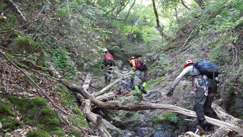 水の量は少し寂しいが、2m程の滝が数個続いて今シーズン最初の沢登りの感触に浸る。